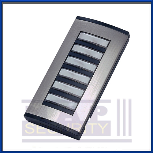 The panel is manufactured from anodised aluminium which is weather resistant. It is supplied for surface mount installation and has depth of just 28 mm, which makes it easier and straightforward to install. The nameplates are LED illuminated for better use in low light conditions.